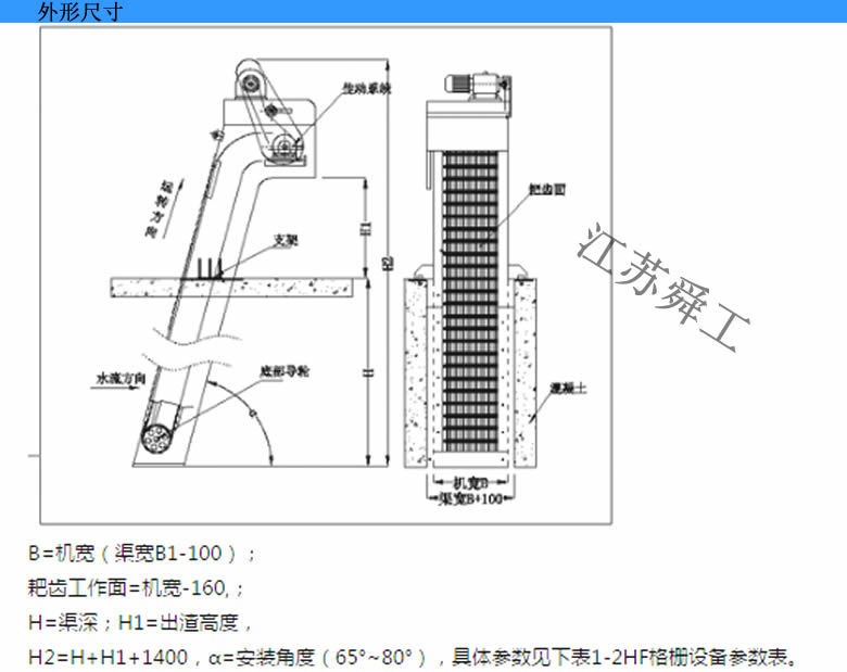 本设备为根据用户需要的过水量及土建渠宽、渠深、需要耙齿间隙等需求定制。